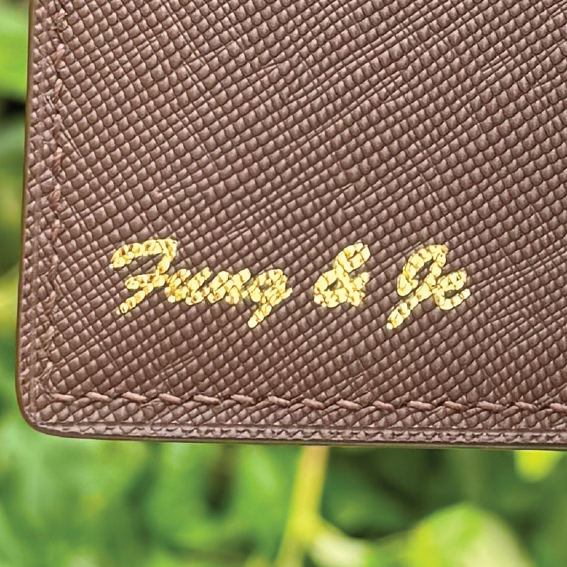 Add a personalized touch with our premium embossing option. We offer a custom brass stamp crafted to your specifications, featuring carefully selected font styles designed to create a striking effect on leather. Once created, the stamp is yours to keep for future use. Browse our samples below to choose your preferred style.