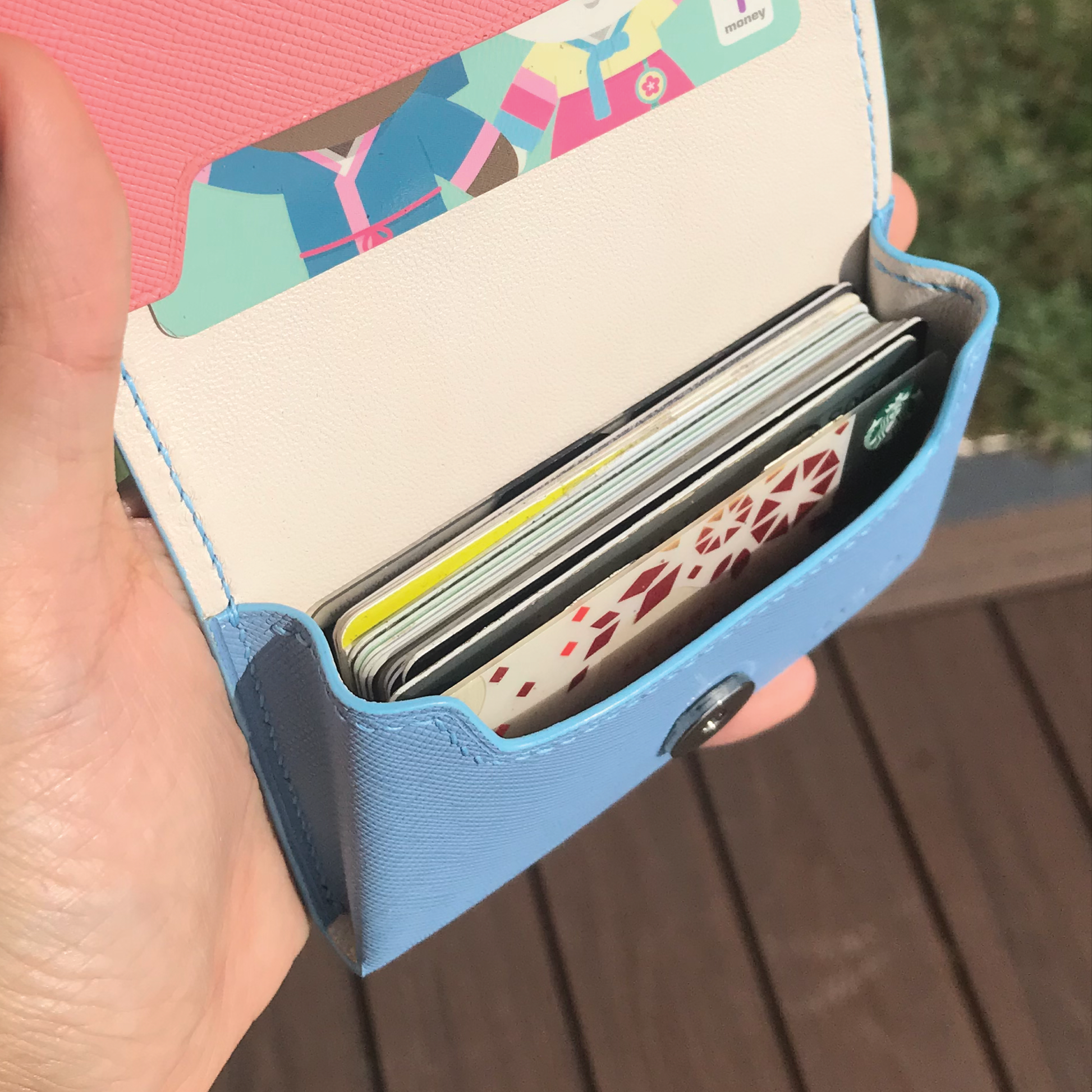 - 容量大,可容納 25-30 張名片或 15 張信用卡。