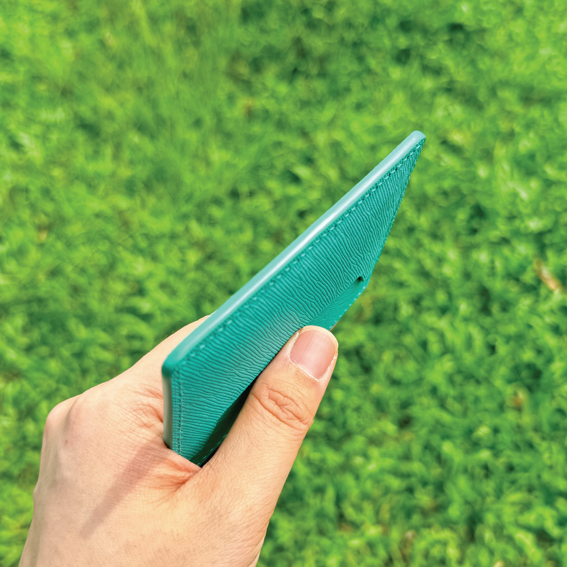 - 把相片膠膜和皮革縫合,可防止分離,提升耐用性。
