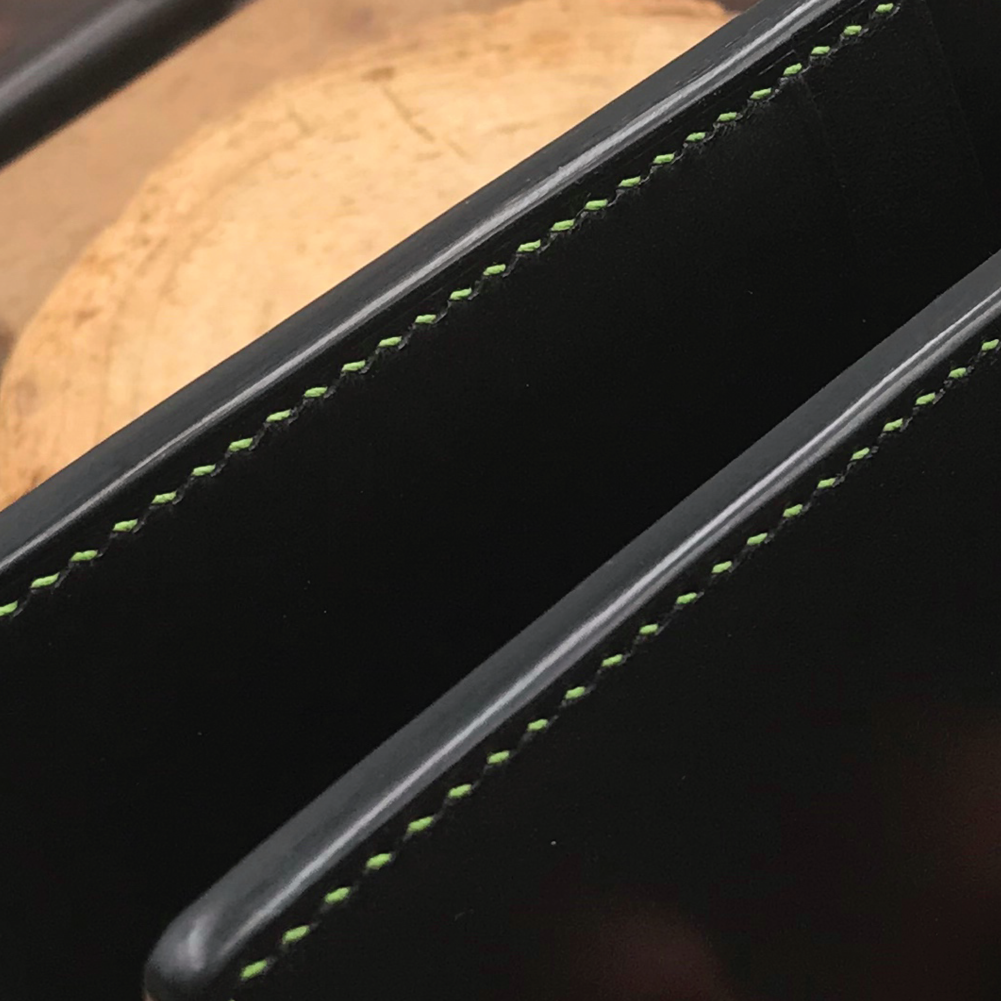 Our edge painting technique produces a sleek, polished, and durable edge, ideal for chrome-tanned leather and the entire product perimeter. Each edge is carefully sanded, coated, polished, and waxed to achieve a flawless finish. The edge color usually matches the main leather for a seamless look. For a modern touch, you may opt for a contrasting color to add visual interest.